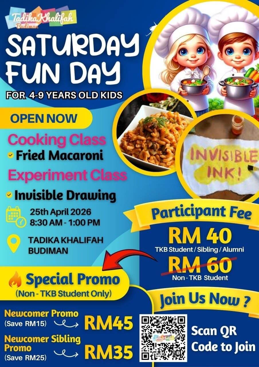 This program is a collaboration with Tadika Khalifah Budiman, bringing quality early childhood learning experiences together for your child.